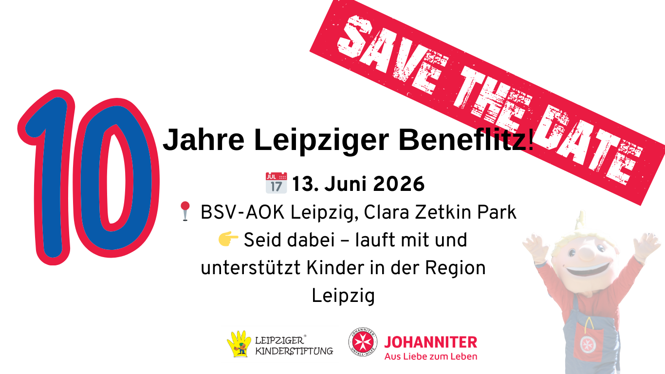 Der Leipziger Beneflitz geht in eine neue Runde! Gemeinsam mit den Leipziger Johannitern organisieren wir diesen besonderen Spendenlauf, bei dem jeder gelaufene Kilometer zählt. Der Erlös kommt finanziell benachteiligten Kindern und Jugendlichen zugute und ermöglicht ihnen die Teilnahme an Ferien- und Freizeiterlebnissen.